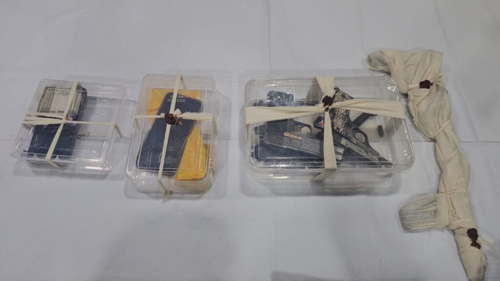पुलिस ने इस कार्रवाई में एक स्कॉर्पियो गाड़ी, 5,000 रुपये नकद, ताला तोड़ने वाला सब्बल, दो देसी पिस्तौल, एक कट्टा और छह जिंदा गोलियां भी जब्त की हैं।